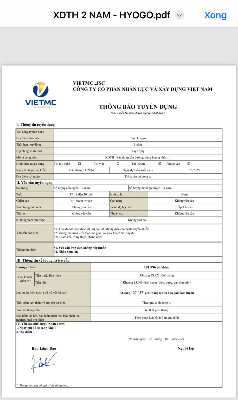 Đơn hàng Xây dựng tổng hợp phỏng vấn ngày 05.11.2024